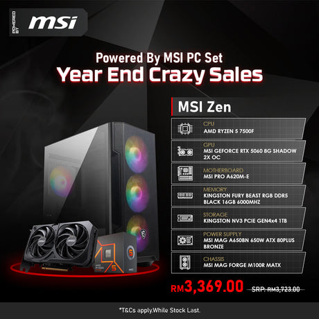 RM2,899.00Unit price /UnavailableVery low stock (2 units)PBM MSI Zen Customized Gaming PC Set - R5-7500F/RTX5060